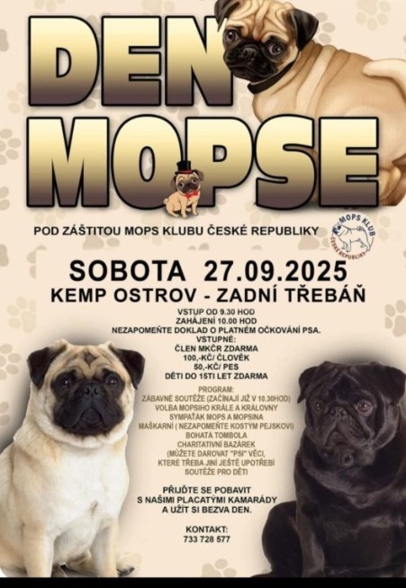 27.9. 2025 Jsme měli prodejní stánek na Dni Mopse. A protože jednoho mopsího kluka doma máme. Byla tato akce hlavně zábavou. Sešlo se tam hodně mopsů a mohli jsme soutěžit například o psího krále či královnu, sympaťáka, agility, snězení piškotů na čas, aport párku a jiné :) Byla zde tombola, i stánky s mopsí tematikou a dekoracemi.
